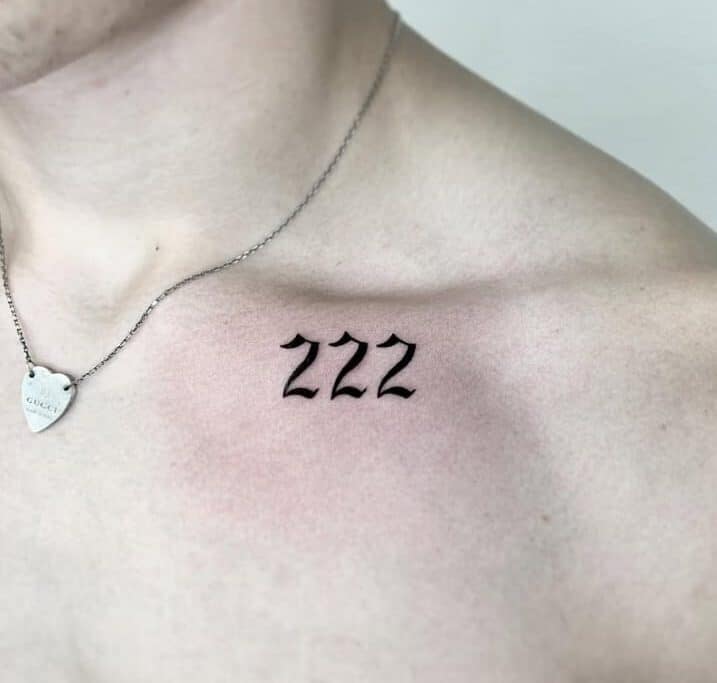 A strong angel number, 222 means that your life will be balanced, harmonious, and run smoothly. When someone gets a 222 tattoo, it usually means: